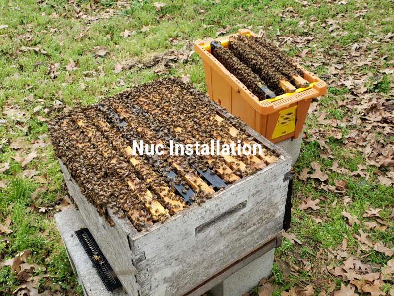 If the weather is unfavorable, place the nuc next to the hive where they will later be installed and open the entrance. Install the nuc in permanent hives when weather conditions improve.