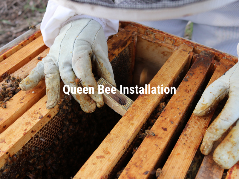 Inspect the queen upon arrival. Place a small drop of water on the screen of the cage (twice a day if not immediately installed). If queen is not installed the first day, keep her out of direct sunlight at room temperature and water daily. The queen cage is not permanent living space.