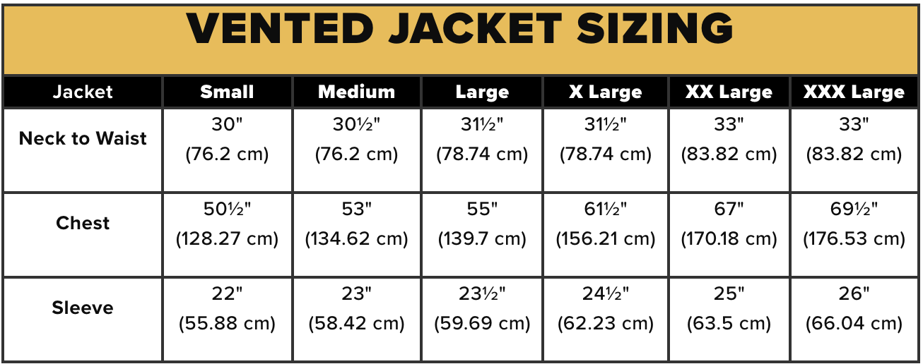 Vented Beekeeping Jacket Size Chart